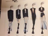 E’ proprio su questo concetto di contaminazioni e mix di stili che si baserà la mia collezione, in cui convivrà uno spirito rock unito ad un gusto classico rivisitato che fa riferimenti al barocco e all’antico. La mia ricerca è infatti proseguita sullo studio e sull’elaborazione di materiali classici come il damascato in chiave moderna : ho quindi ripreso il motivo che verrà ricamato su capispalla e top con linea a chiodo, (capi che richiamano il mondo del cinema degli anni 50 dei ribelli con personaggi come Marlon Brando e James Dean), che verranno realizzati tuttavia in neoprene per conferire un senso di modernità. Ad essi verranno abbinati pezzi confezionati con materiali più leggeri, come chiffon ed organza, per ottenere un contrasto tra tessuti così diversi tra loro per consistenza e peso; alcuni (nel primo gruppo) presenteranno una texture marmorea dipinta a mano che rimanda alla scultura e al mondo dell’arte classica, mettendo quindi a contatto due realtà così diverse come appunto scultura e cinema. I capi presenteranno inoltre accessori, inserti e rifiniture realizzati con zip, per seguire il mood rock della collezione, nel secondo gruppo in particolare la lavorazione con le zip si ispirerà alle linee della facciata della chiesa di San Carlo alle Quattro Fontane realizzata da Borromini. L’elaborazione del damascato sfocerà infine (nuovamente nel secondo gruppo) in una stampa realizzata a stencil su pelle con vernice spray, stampa formata da un disegno sovrapposto che va a sfumare e in cui il colore verrà crepato per ottenere un effetto anticato e vissuto. Sempre in questa seconda parte, che presenterà uno spirito più sportivo, le cinture saranno realizzate con una striscia di pelle rifinita con zip in cui verrà dipinta a mano la sagoma dell’accessorio.